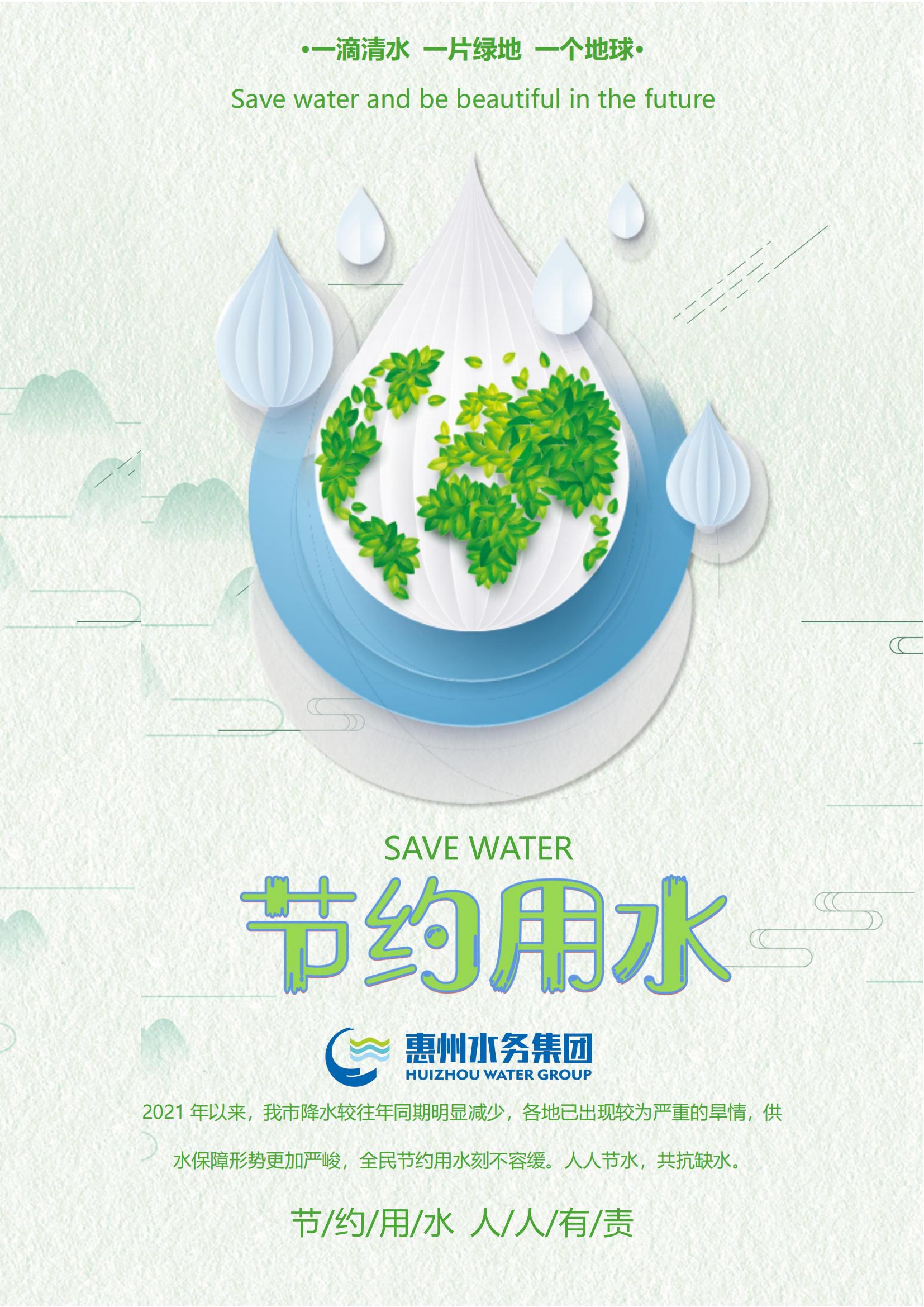親愛的同事們,“人人節(jié)水,共抗缺水”。讓我們積極行動起來,以實(shí)際行動支持全市節(jié)水工作,從自身做起,從現(xiàn)在做起,珍惜每一滴水,為建設(shè)資源節(jié)約型、環(huán)境友好型的社會貢獻(xiàn)自己的力量!