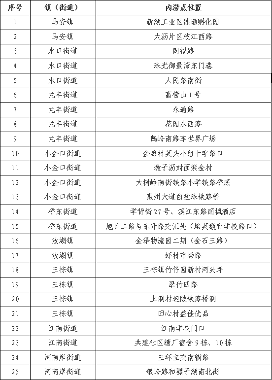 惠城中心區(qū)內(nèi)澇積水點(diǎn)整治工程位置表